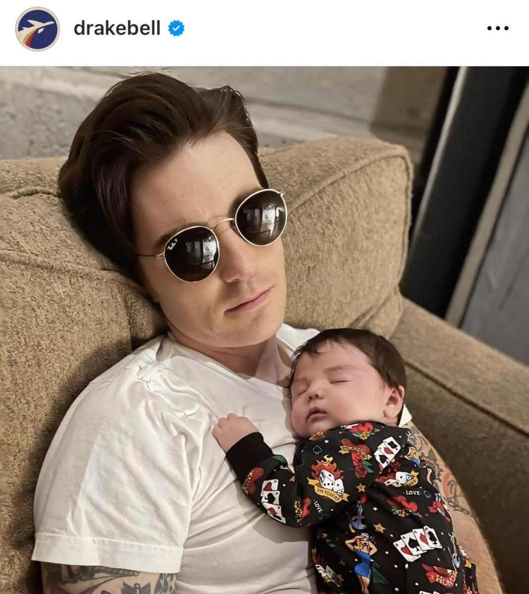 Дрейк Бел със сина си като бебе.