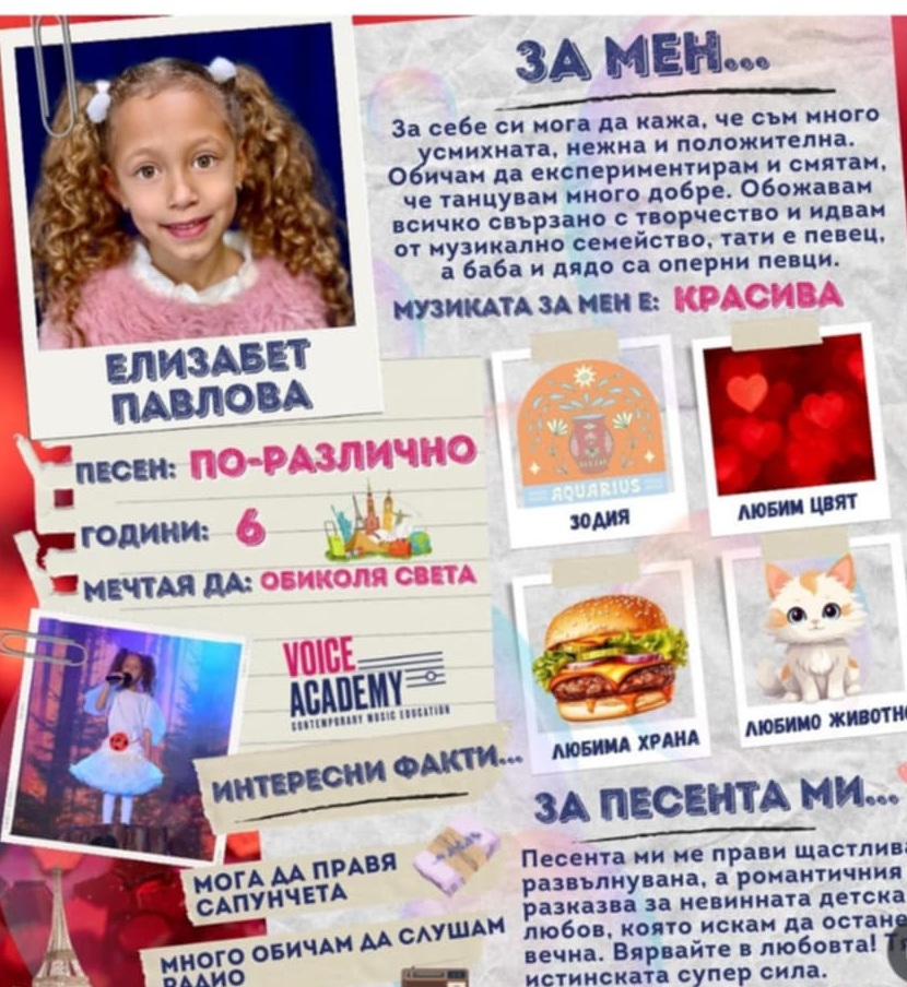 На 27 април 6-годишната талантлива млада госпожица ще представи песента „По-различно“ на концерт премиера на „Кислород“- от новия албум на Voice Academy.