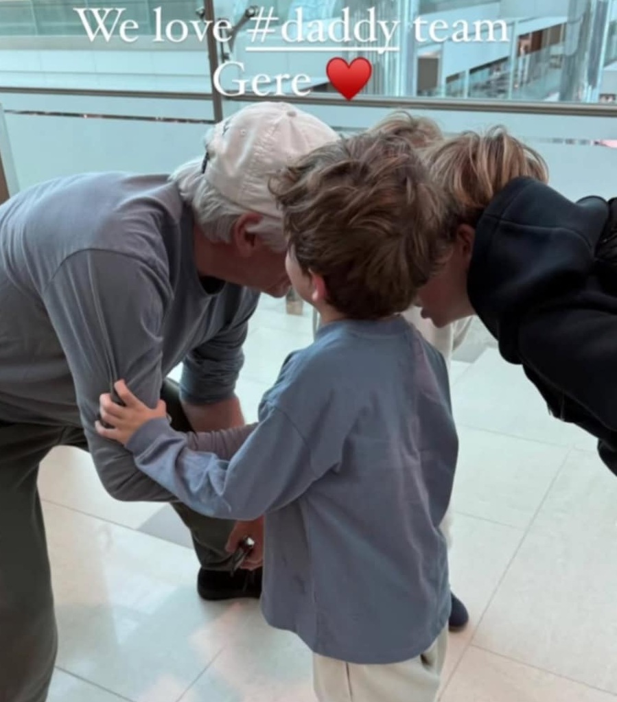 Гиър целува синовете си Джеймс и Александър. Снимка: Instagram