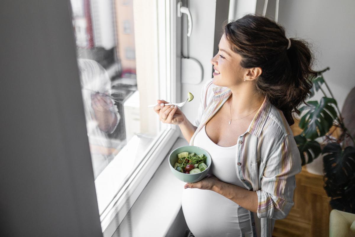 Бременна похапва зеленчуци. Снимка: Shutterstock