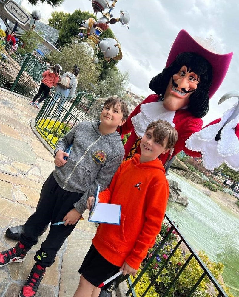 Те прекараха деня в увеселителния парк в Анахайм, Калифорния и се снимаха със сувенири и ушички на Мики Маус.
