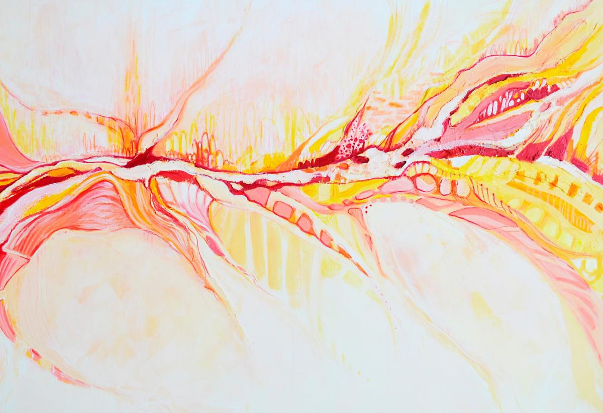 В картината си представям път (линия) с много разклонения, които приемам за различни ситуации и емоционални състояния.“