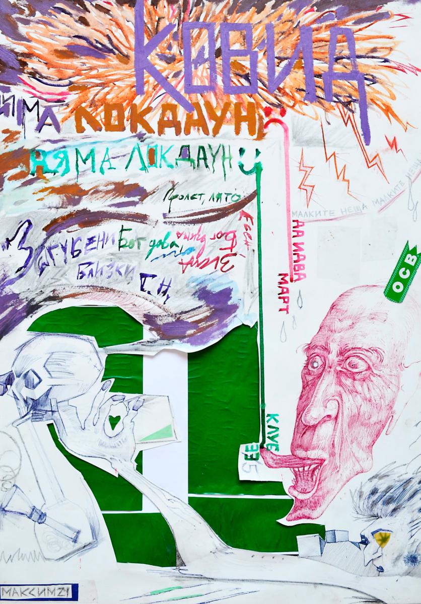 Максим Христов изучава специалност „Изкуствознание“ в Националната художествена академия. Своята творба той озаглавява „Има щастие - Няма щастие“ и представя с думите: „Картината изобразява фигурална композиция в абстрактно, крайно експресивно пространство. Творбата засяга проблематиката на търсеното щастие в лицето на употребата на наркотици и самоцелното консуматорство, използвайки както символика, така и гротескни образи. Също така картината има отношение и към безкрайната тема за COVID-19 и щастието на хората по време на тази пандемия, което е пряко повлияно и контролирано от затягането или отпускането на противоепидемичните мерки. За цел имам да представя малка част от начините, до които хората прибягват в търсене на щастието, които в голямата си част са моментно и повърхностно задоволяване на тази нужда“.