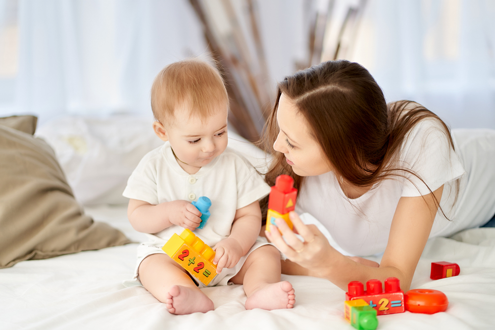 Говорете му постоянно и общувайте с него (докато сменяте памперса, по време на къпането и храненето, докато играете…). И винаги обяснявайте всичко в детайли, като използвате прости и ясни изрази, но никога променени или „бебешки“ думи.
