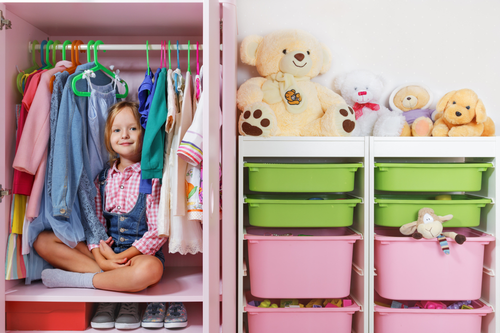 Добра идея е да разполагате с мини гардероб в детската стая, в който дрехите да бъдат подредени на закачалки и купчинки по вид. Това е много полезно, дори и за малки деца, тъй като ги учи лесно да правят избор, но и на самостоятелност. А в една определена възраст те ужасно силно искат да правят всичко сами.