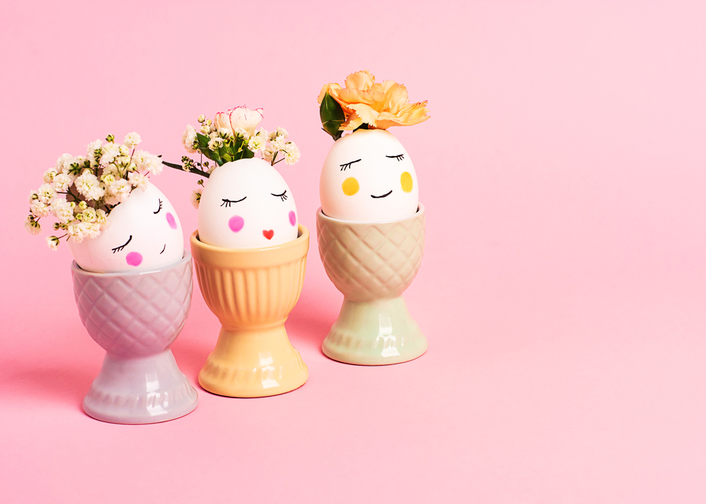 Задачата на детето е да им изрисува лица, след което сипете във всяко по малка вода. Така ще ги превърнете във вазички за минибукети. Във всяка черупка нека детето постави цветчета по свой избор. Тази украса лесно може да се подменя и да остане дори и след Великден.