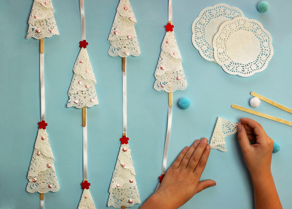 Става дума за онези хартиени поставки в бяло с красиви дантелени крайчета. Трябват ви и малко дървени клечки – с дължина като за сладолед, или по-фини сухи клонки.