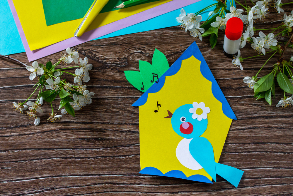 Непременно добавете и цветенца, изрязани също от шарените листове, с които да напомните, че пролетта е на прага.