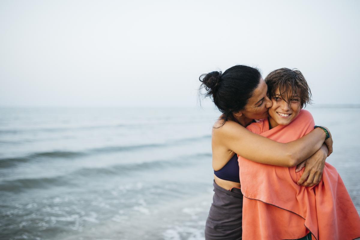 Майка целува сина си. Снимка: Getty