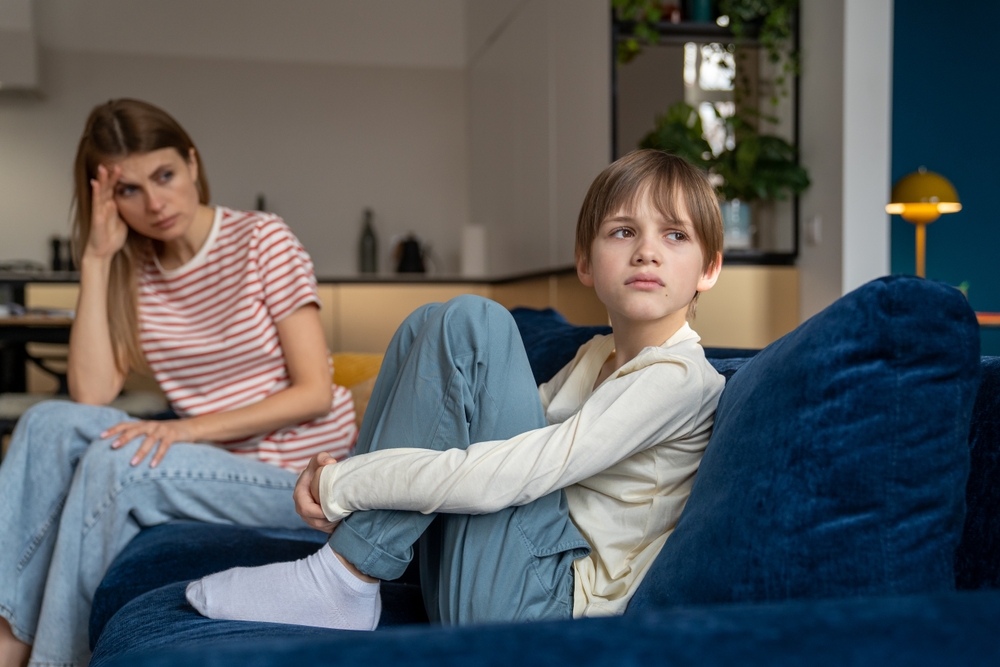 Майка говори на сина си, а той гледа сърдито. Снимка: Shutterstock