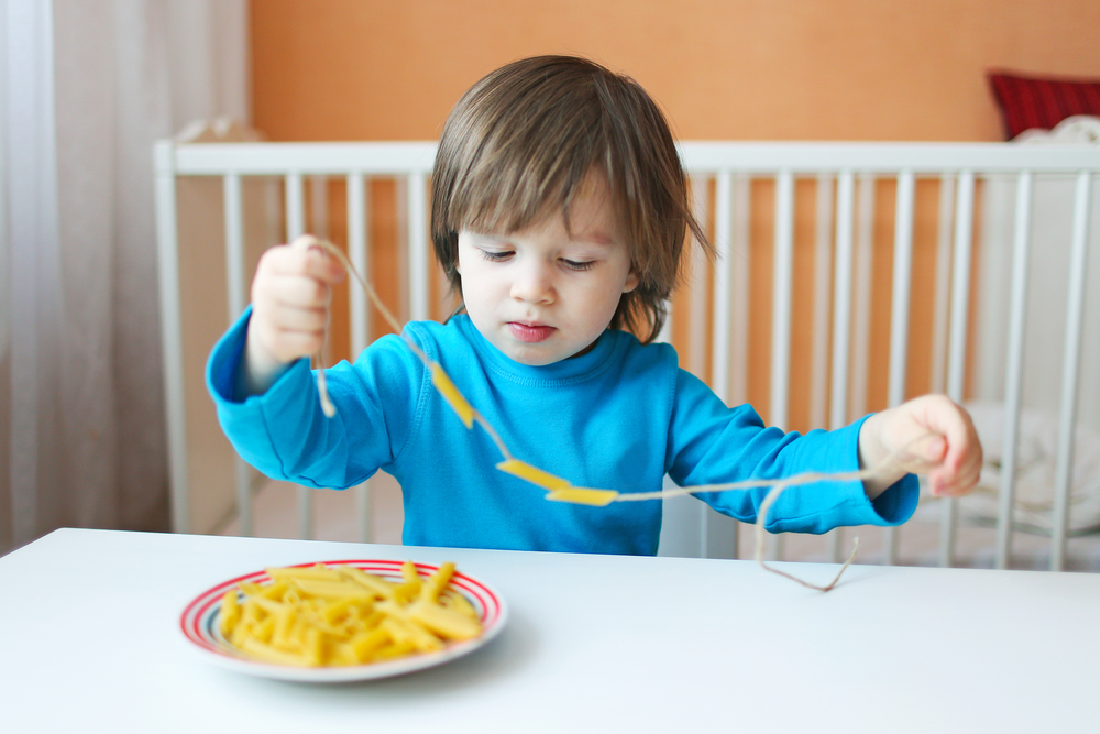 Малко дете изработва гердан от макарони. Снимка: Shutterstock