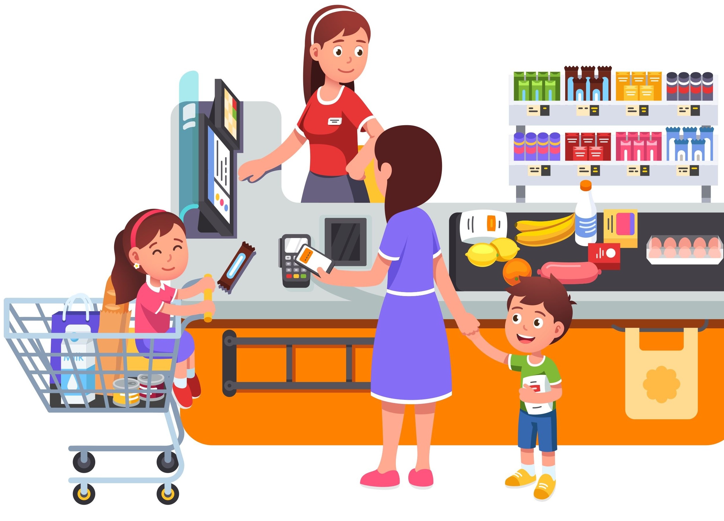 Майка пазарува с двете си деца. Илюстация: Shutterstock