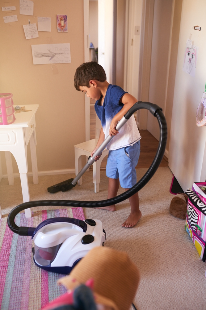 Момче чисти с прахосмукачка. Снимка: Shutterstock