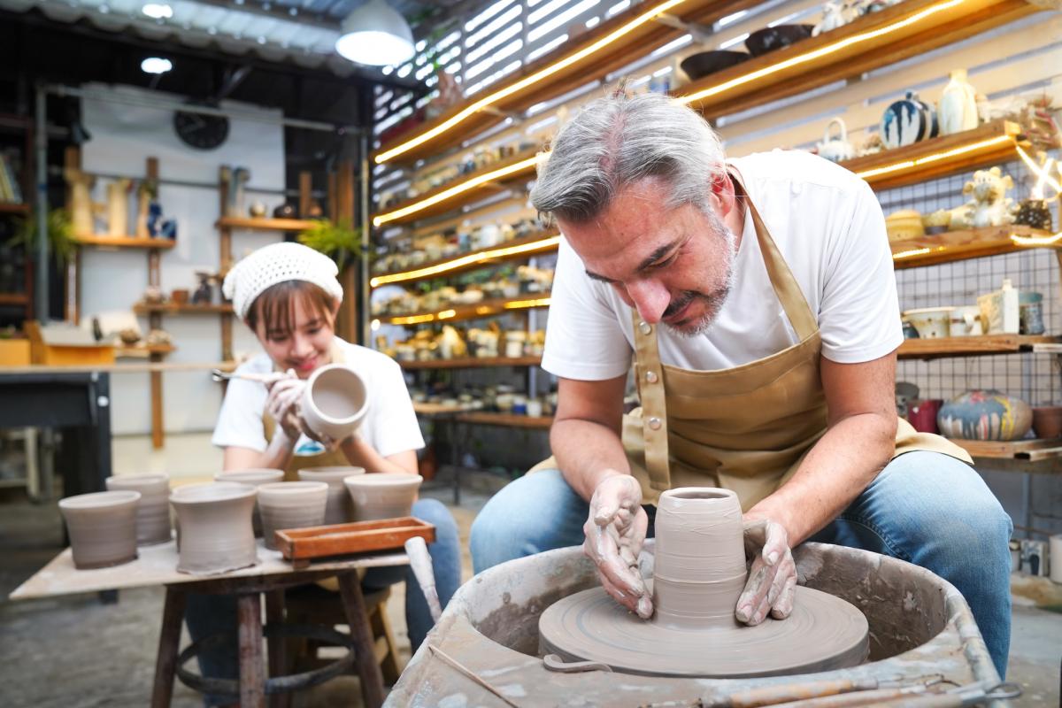 Мъж и жена праят съдове от глина. Снимка: Getty