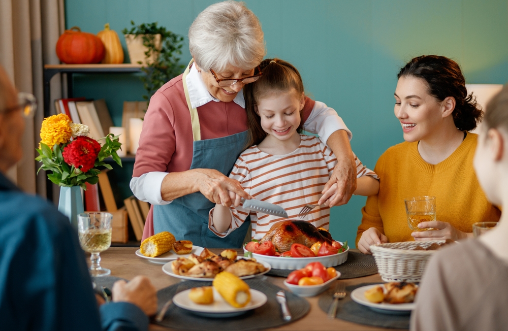 Момиченце реже пуйката по време на обяд.  Снимка: Shutterstock