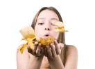 Жена духа листа от шепите си. Снимка: Shutterstock