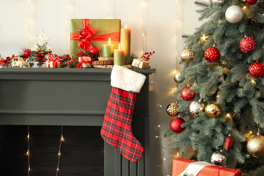 Коледни чорапи с изненади на камината. Снимка: Shutterstock