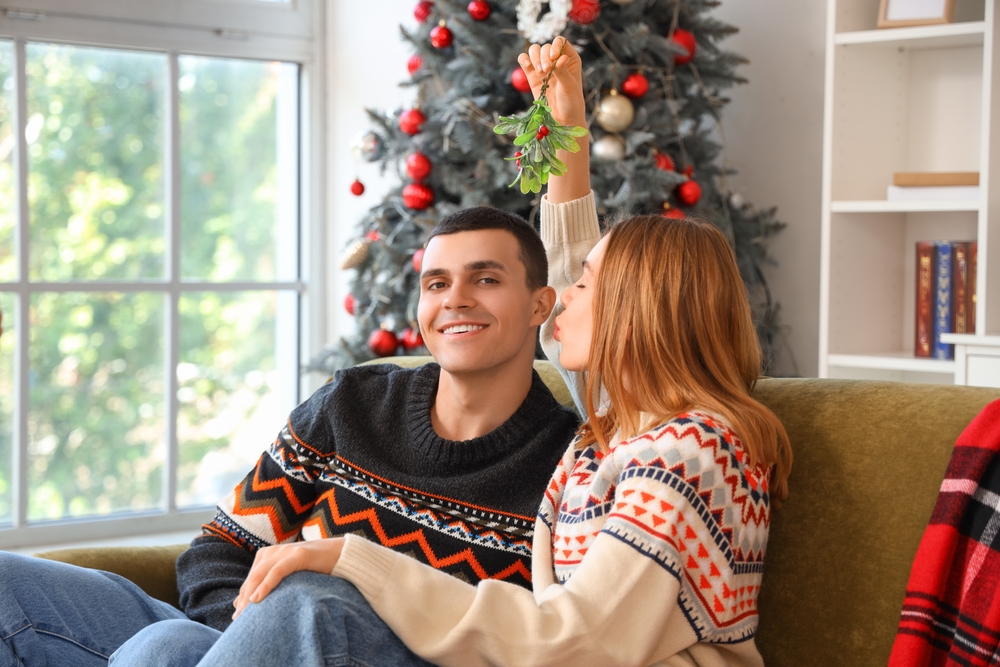 Със сигурност вече сте чували за целувката под имела, която трябва да си разменят двама, случайно попаднали на това място, особено ако живеят на Острова. Но има още нещо – целувка в полунощ, под окачения над прага имел, обещава любовен късмет през цялата година.