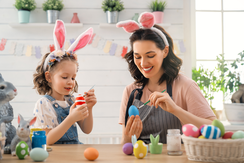 Майка и дъщеря боядисват яйца. Снимка: Shutterstock