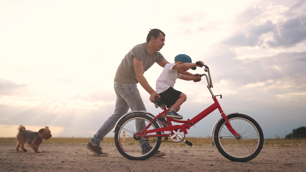 Баща учи сина си да кара колело. Снимка Shutterstock