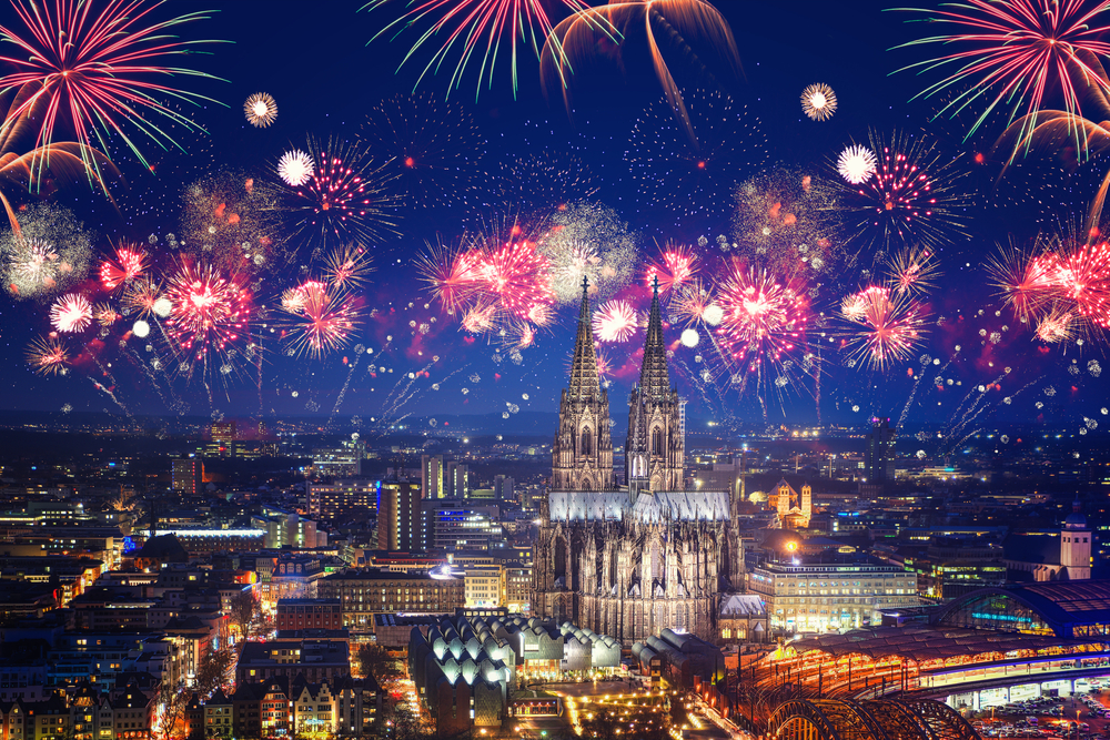 Къщите и сградите в центъра на Кьолн са украсени с красиви и цветни декорации.