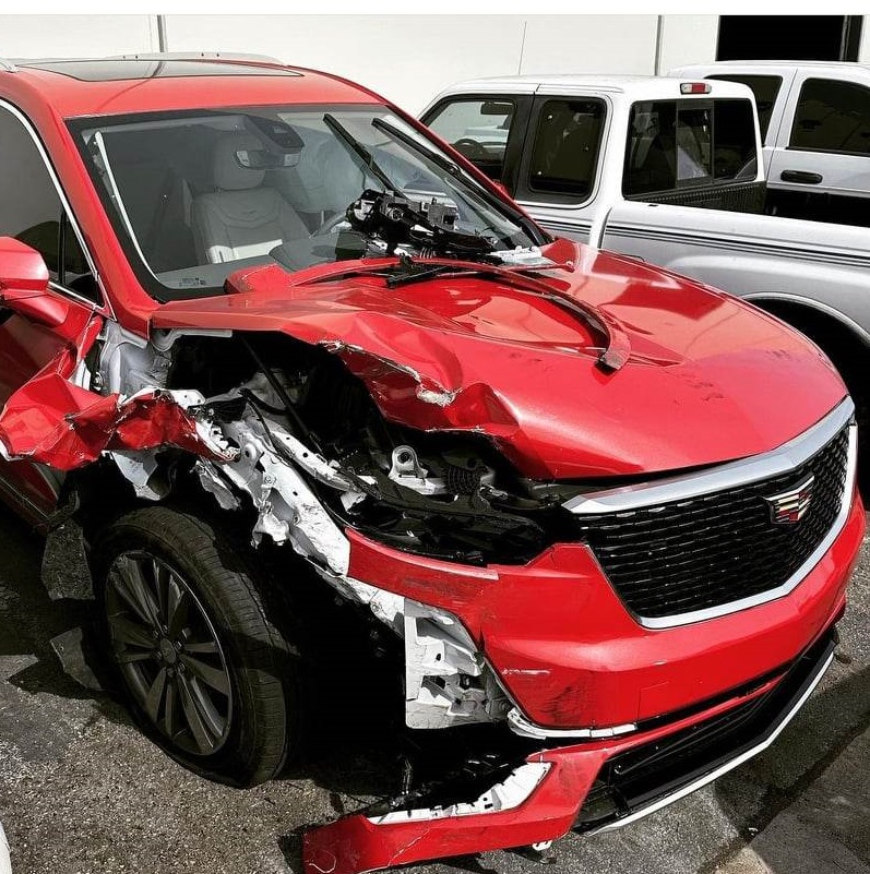 Джонсън публикува в социалните си мрежи снимка на червен кадилак, смачкан от страната, където е седяла 74-годишната Ата Джонсън.