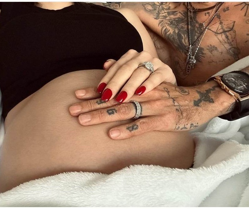 Моделът обяви щастливата новина в личния си Instagram, като публикува снимка на закръгленото си коремче.