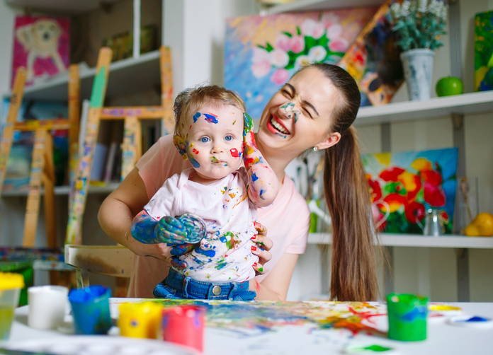 - Оцветете всеки от пръстите му в различен цвят и оставете бебето да се опита да „смесви“ цветовете, като преплита пръстите.