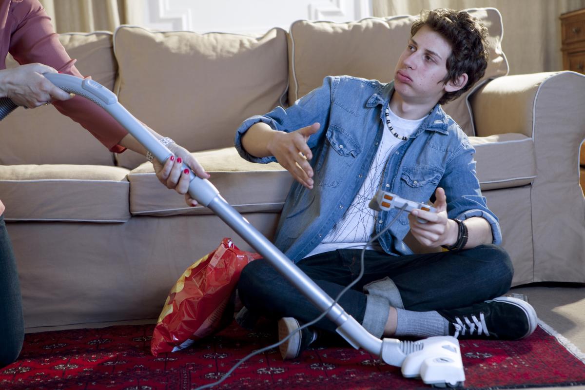 Майка чисти, а тийнейджърът се муси, че му пречи . Снимка: Getty