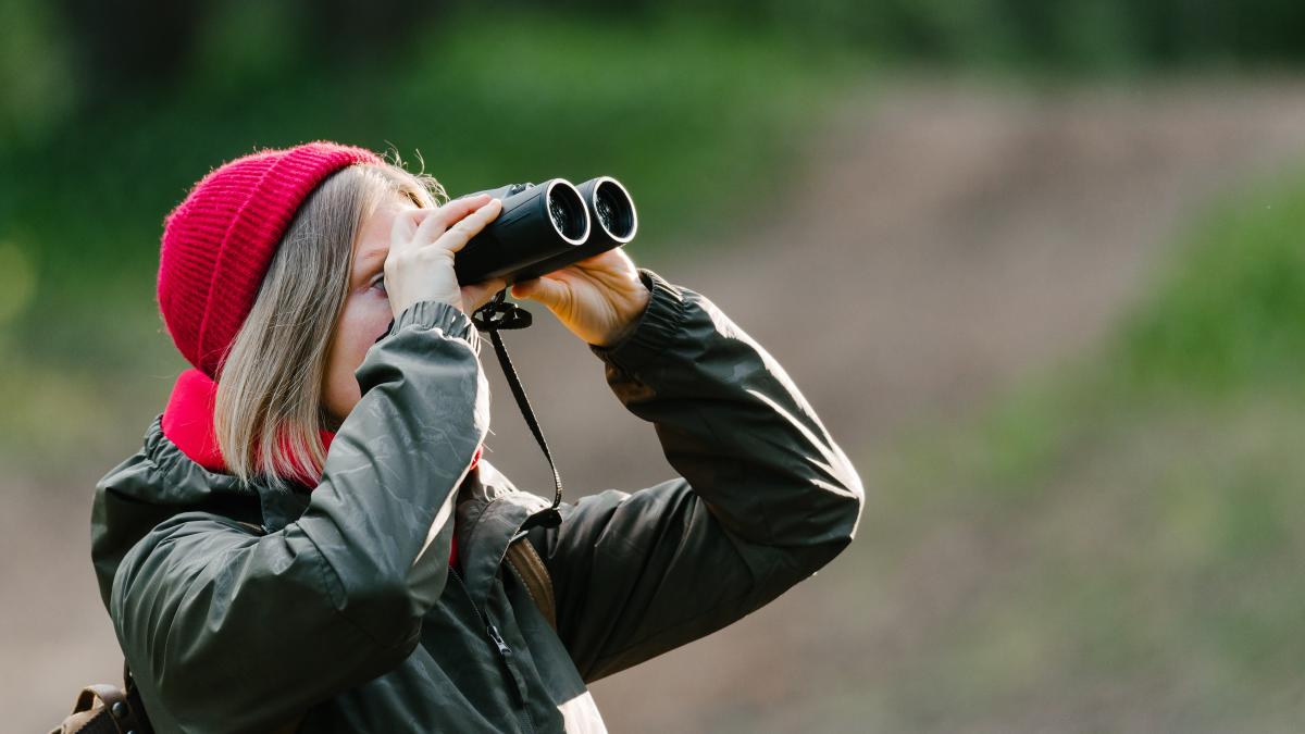 Девойка наблюдава с бинокъл. Снимка: Shutterstock