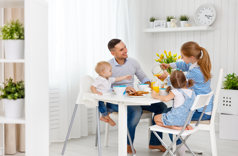 Ако е възможно, основните ястия трябва да бъдат заедно, в атмосфера на спокойствие, така че да се възприемат като приятни моменти за споделяне. По време на хранене телевизорът трябва да остане изключен, защото отвлича вниманието от това, което се консумира и кара всички да поглъщат повече от необходимото.