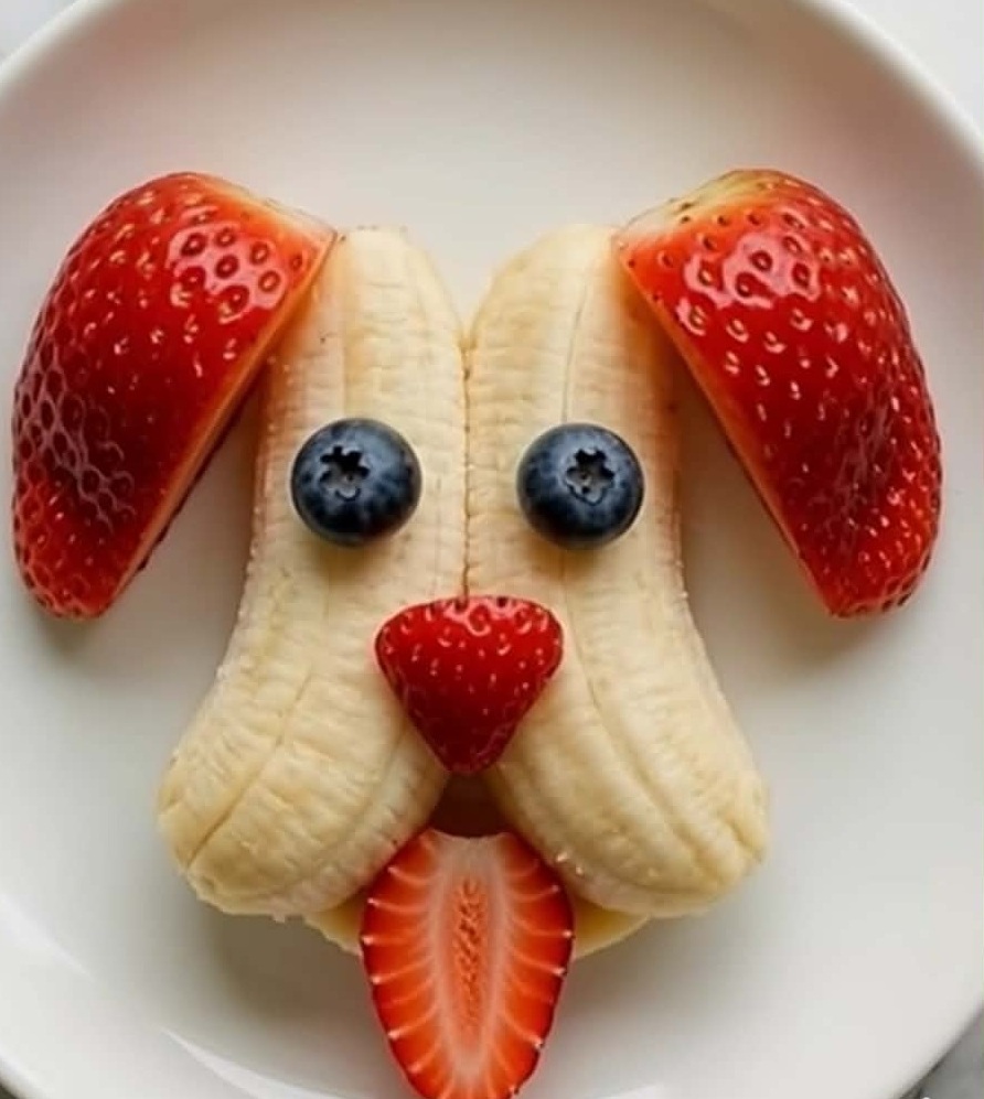 Един банан,  1-2 ягоди, две боровинки - това са продуктите, които ще са ви необходими, за тази весела картинка.