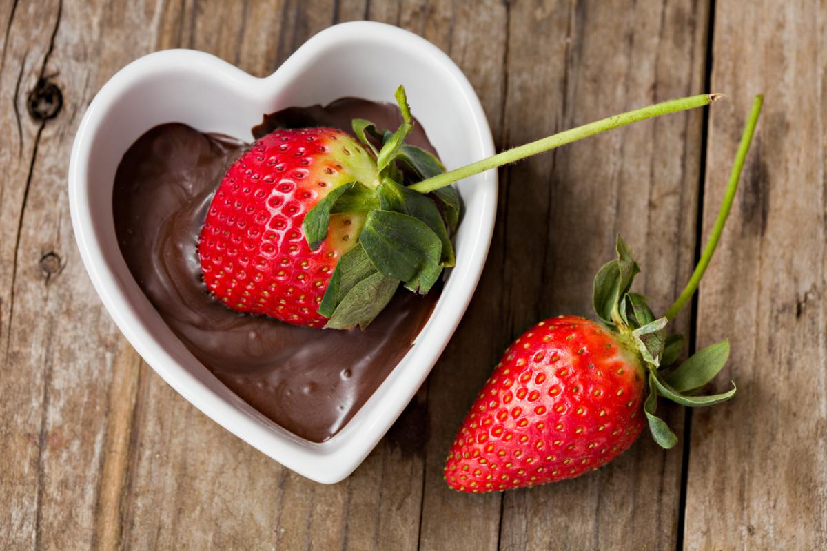 Необходими продукти: 200 г ягоди, 200 г натурален шоколад, 100 г млечен шоколад, 250 г масло, 200 г кафява захар, 4 яйца, 140 г брашно, 50 г какао на прах