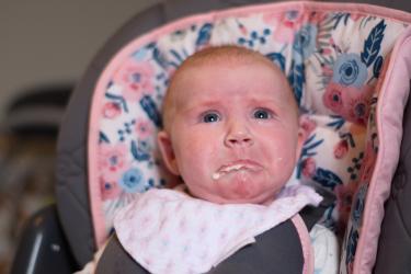 Детето се муси на храната