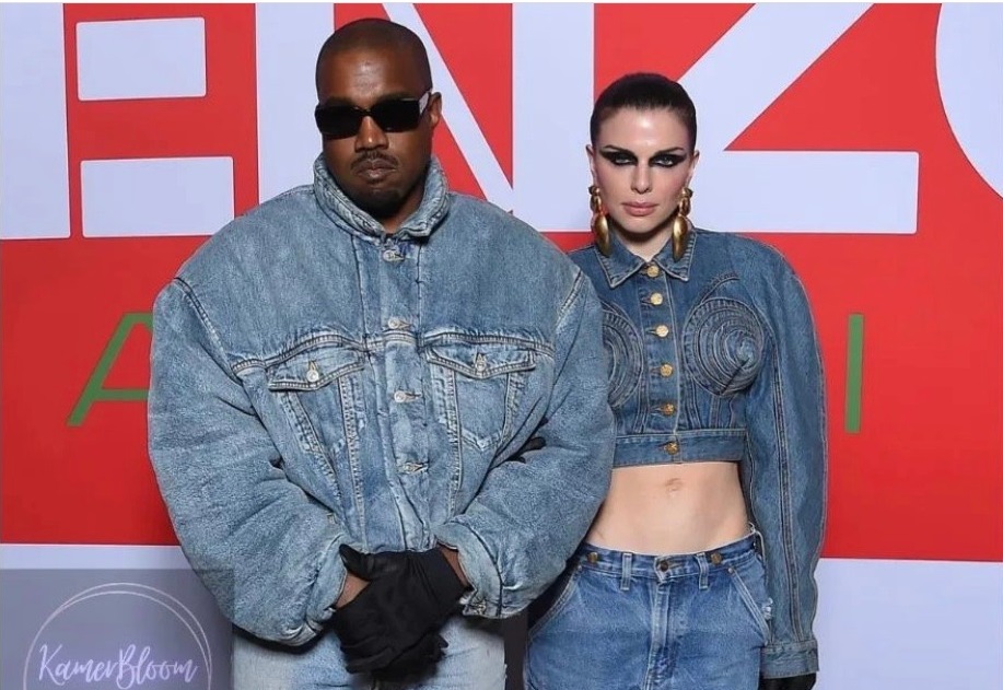 На сцената, пред надуваемата фигура на Кание Уест