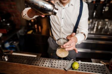 Московски бар предлага коктейла в чаша с две медицински спринцовки