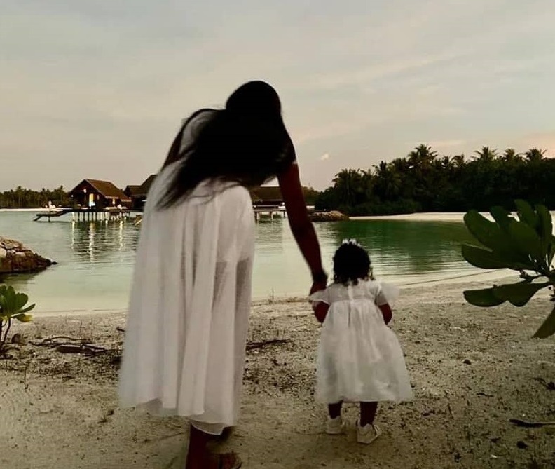 Публикува серия снимки от ваканцията, на всички едногодишната кукла е показана само в гръб