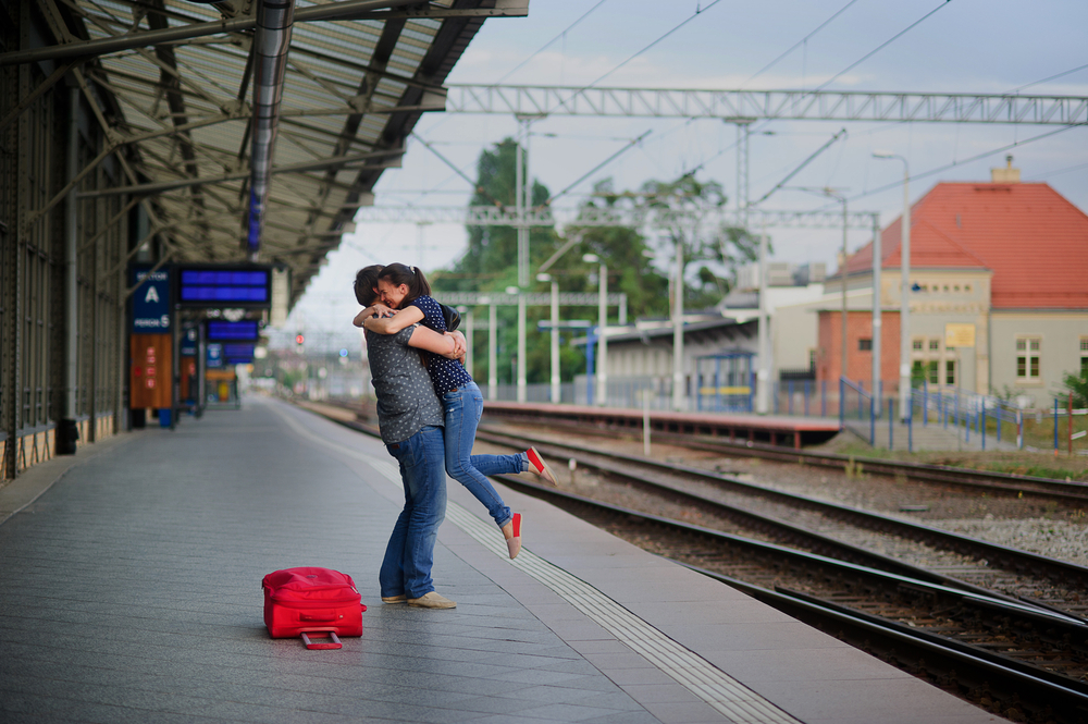 Мъж посреща любимата си на гарата. Снимка: Shutterstock