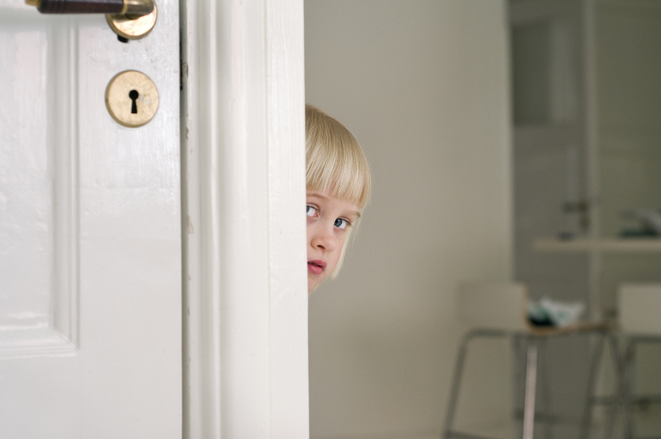 Дете, което наднича през вратата. Снимка: Getty