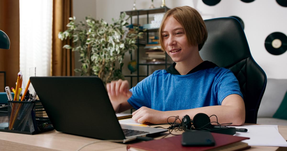 Дете, което общува онлайн пред компютър. Снимка: Shutterstock