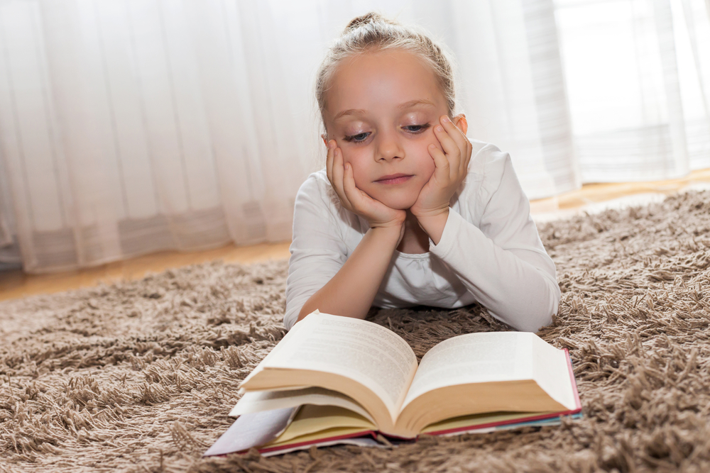 Момиченце, което чете дебела книга. Снимка: Shutterstock