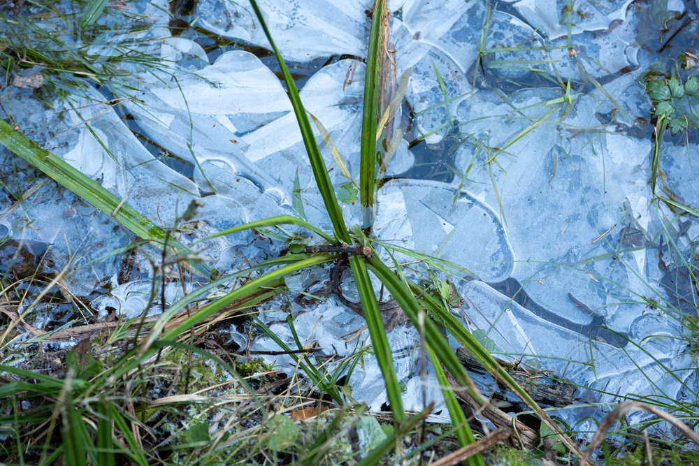 Лед, който покрива локва. Снимка: Shutterstock