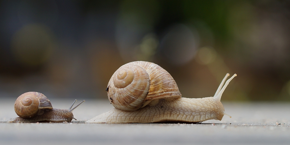 Първо, тялото на охлюва е меко и тежко в сравнение с размера му. Той носи черупка на гърба си – неговият дом и защита. Тази черупка го предпазва от врагове и му осигурява топлина, но го прави по-тежък.