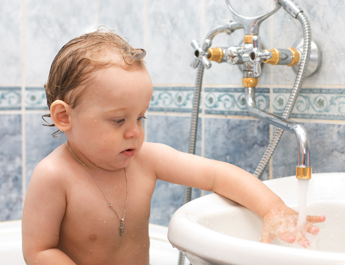 Още от 2-годишна възраст е добре детето да се самообслужва в тоалета си, разбира се, след като му покажете и следите процеса. И след като приключи, може да му разрешите дори да измие с гъба умивалника.