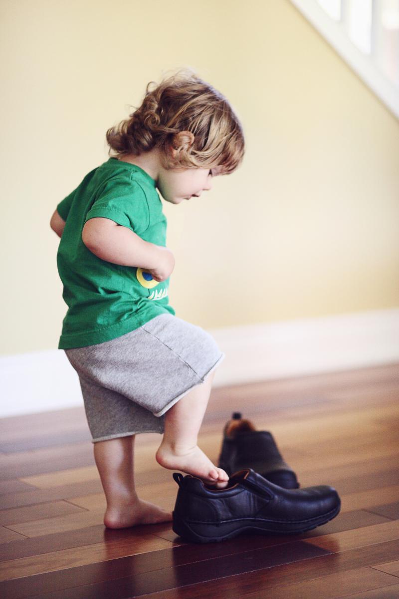 Хлапе пробва обувките на татко. Снимка: Getty