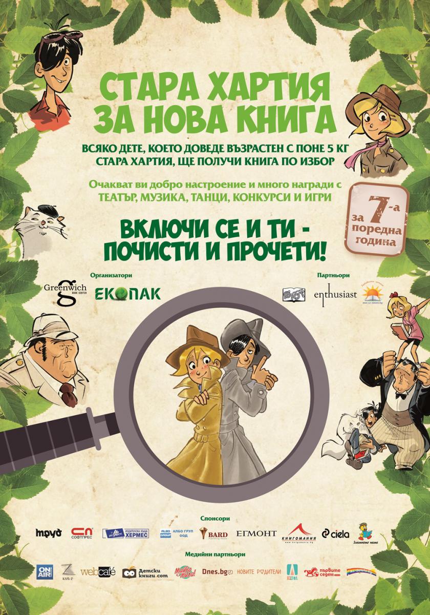 За да научим децата на рециклиране, да събират отпадъците разделно, да пазят природата и да ги насърчим да четат, 5 общини се включват в седмото издание на националната екоинициатива „Стара хартия за нова книга“. През 2019 г. в Бургас, Хасково, София, Русе и Велико Търново всяко дете, което заведе възрастен придружител с поне 5 кг стара хартия за рециклиране, ще получи нова детска книга по избор, както и подаръци от партньорите на празника. Организаторите от „ЕКОПАК България“ и Книжен център „Гринуич“ напомнят, че колкото повече стара хартия съберат децата, толкова повече дървета ще спасят от изсичане.