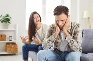 Жена се нервира и говори, а мъжът си запушва ушите. Снимка: Shutterstock