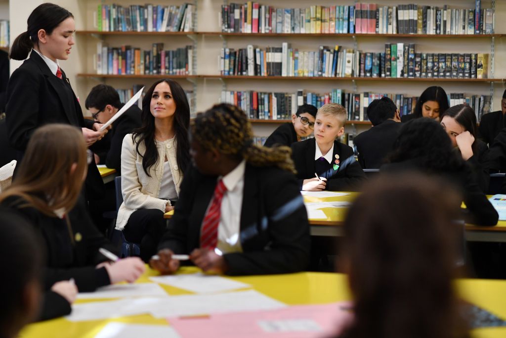 Непосредствено преди Международния женски празник Меган Маркъл пристигна във Великобритания от Канада и посети училището Robert Clack Upper School в графство Есекс.