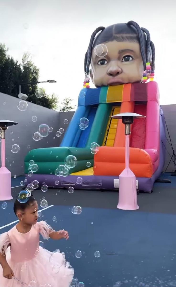 За целта Дженър преобразила дома си по вълшебен начин, осигурявайки на малчуганите истинска количка за сладолед, магазин за бонбони, фургон за сандвичи, декоративен замък от балони и дори надуваема пързалка с лика на Сторми.
