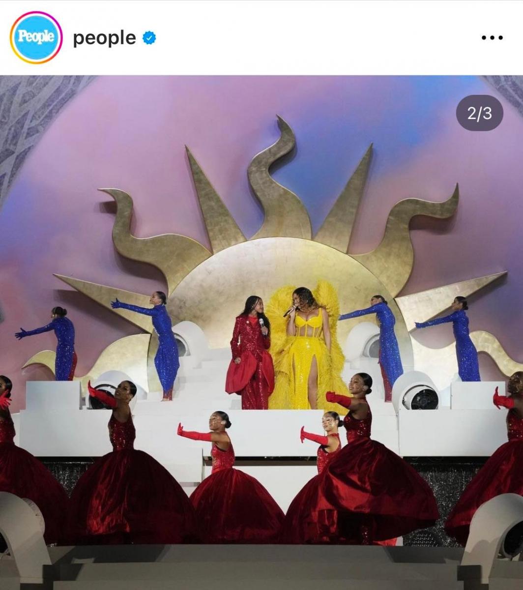 Голямата изненада за почитателите на звездата обаче бе неочакваната поява на нейната дъщеря в шоуто. Двете изпяха в дует хита на Бионсе Brown Skin Girl от „Цар Лъв“.